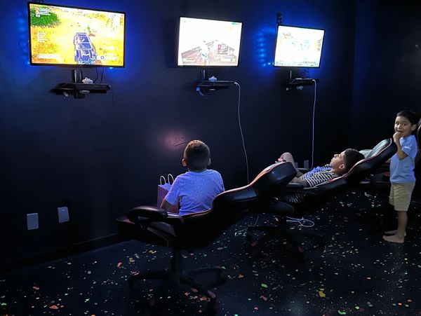 This gamer room has 3 playstations and 3 xboxes with trendy games